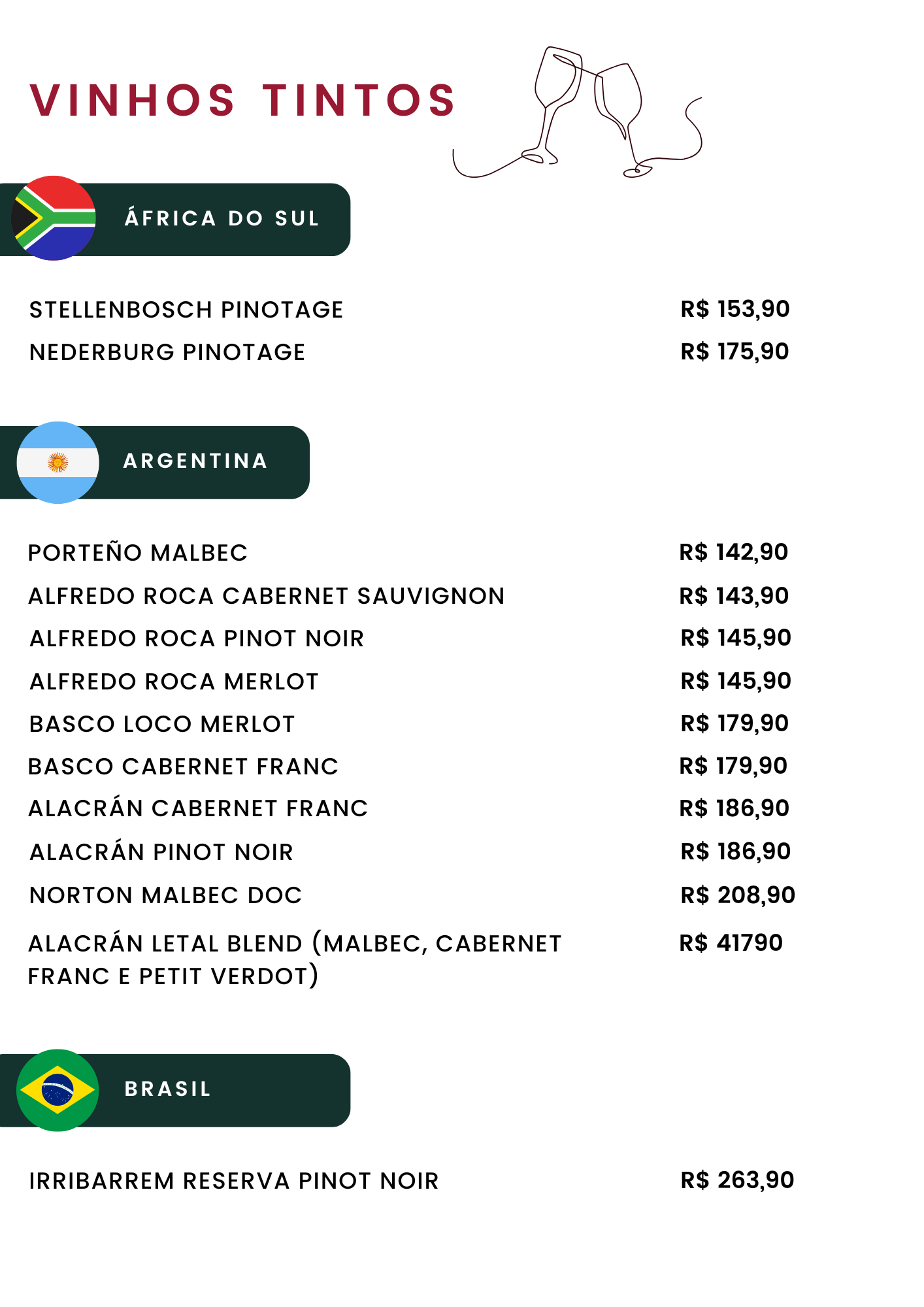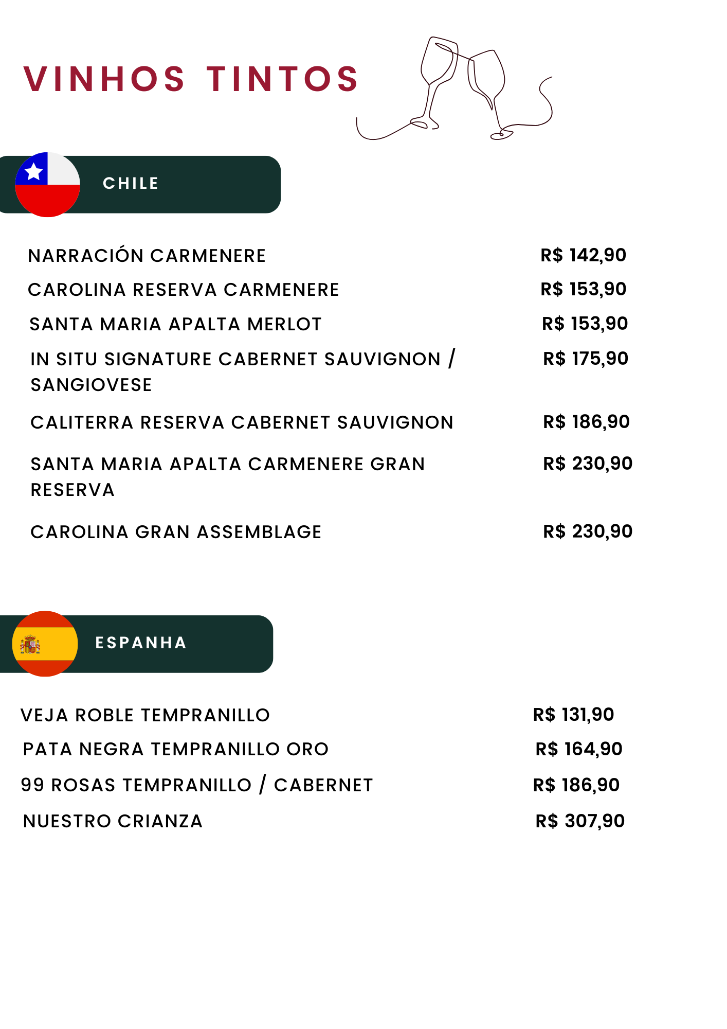 Carta de Vinhos